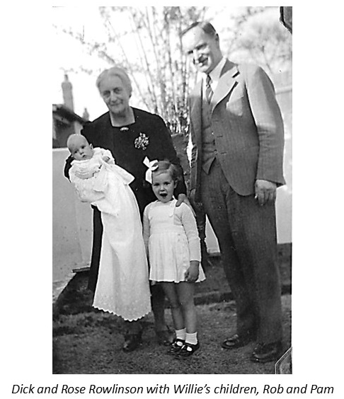 Willie Rowlinson married Isabella Plenderleith “Pat” Smorenburg in 1936. They became my husband’s grandparents. The couple had a daughter, Pamela Jean “Pam” (*1941) and a son, Robert Anthony “Rob” (*1944).18-20 READ MORE on Willie Rowlinson.vvv