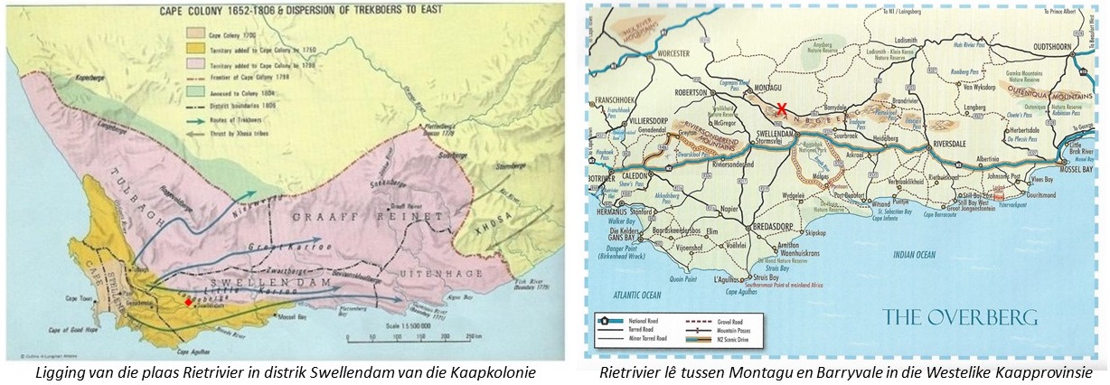 Na sy vrou se afsterwe weens geboortekomplikasies, het die 23-jarige Jan Coetzer die afstand van 60 km na Drakenstein met sy pasgebore babadogter afgelê, na waar sy ouers gewoon het. Hierdie stap was waarskynlik uit nood gebore en het hy hulp gaan soek met die versorging van die kleine Maria Anna. Sy het tog moedersmelk nodig gehad en dalk kon ‘n sogende familielid of ‘n soogvrou uit die omgewing help. Maria Anna Coetzer is daar in NGK Drakenstein gedoop.10 Hoe lank Jan in Drakenstein gebly het, en of sy peuterdogter saam met hom na Agter-Kogmanskloof se omgewing vertrek het is nie bekend nie, maar op 24 Januarie 1741 het Jan Coetzer homself op die plaas Rietrivier aan die noordelike voetheuwels van die Langeberge aan die noord-oostelike grens van Stellenbosch distrik bevind. In 1743 het distriksgrense verskuif en het hul plaas daarna in Swellendam distrik geval. Jan Coetzer het 12 riksdaalders per jaar vir die leningsplaas betaal, soos onderteken is op 13 Januarie 1742 in die Kasteel de Goede Hoop. Omdat hy toe al reeds vir ‘n jaar op die plaas gewoon het, is hy ‘n boete van twee riksdaalders, vir laat registrasie, opgelê.2,20,21